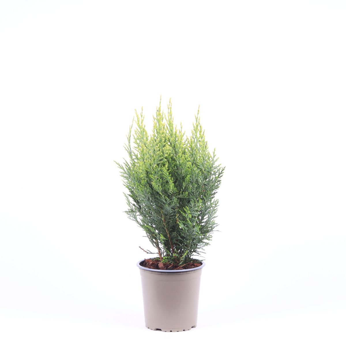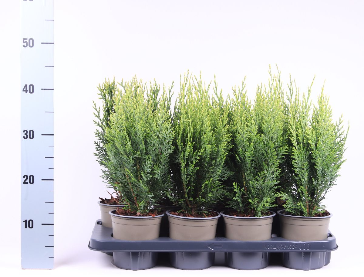 Pyramidal wachsende Konifere. Höhe gut 2 m, Breite bis 1 m. Kompakter Wuchs. Langsam wachsend. Laub graugrün, junges Laub weißbunt. Einzelpflanze. Heller, geschützter Standort. Humusreiche Böden.