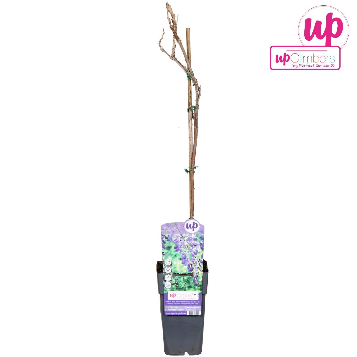 Hohe Kletterpflanze mit kräftigem Wuchs. sommergrün. Höhe 7-9 m. Blatt gefiedert, leuchtend grün. Blüten lilablau in langen, hängenden Trauben. Duftend. Mitte Mai, vor dem Blattaustrieb. Nachblüte im September.