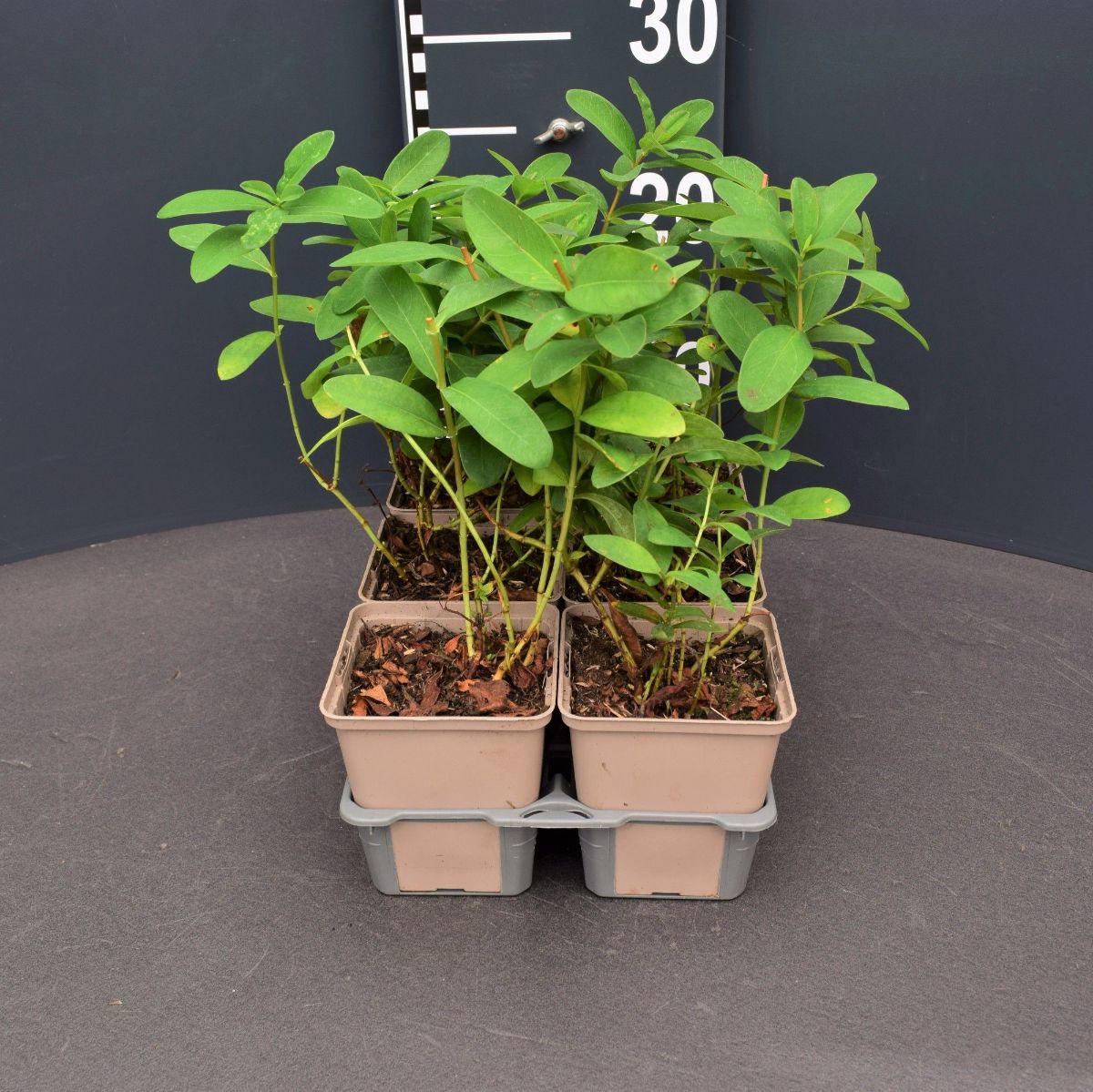 Zwergstrauch, breitet sich unterirdisch aus. Mehr oder weniger immergrün. Höhe ca. 20 cm. Blatt dunkelblaugrün. Blüten goldgelb im Sommer. Darf zu Frühjahrsbeginn ganz geschnitten werden. Sonne und Schatten.