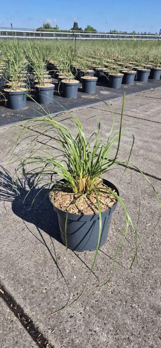 Ziergras mit langem, grünem Laub. Bildet einen wintergrünen Horst bis ca. 1 m hoch. Auffallend silbrigweiße Blütenrispen bis ca. 2 m hoch. August bis November. Sonnig und nicht zu feucht. Vor starkem Frost schützen.