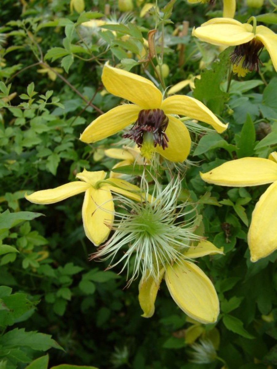 sommergrüne Kletterpflanze, bis 3-4 Meter hoch werdend. Blüten glöckchenförmig, goldgelb. Blütezeit: Juli-Oktober. Blatt leuchtend grün. Nach der Blüte dekorative, große Samenfasern, die lange am Strauch bleiben. Sonne-Halbschatten. Fruchtbare Böden.