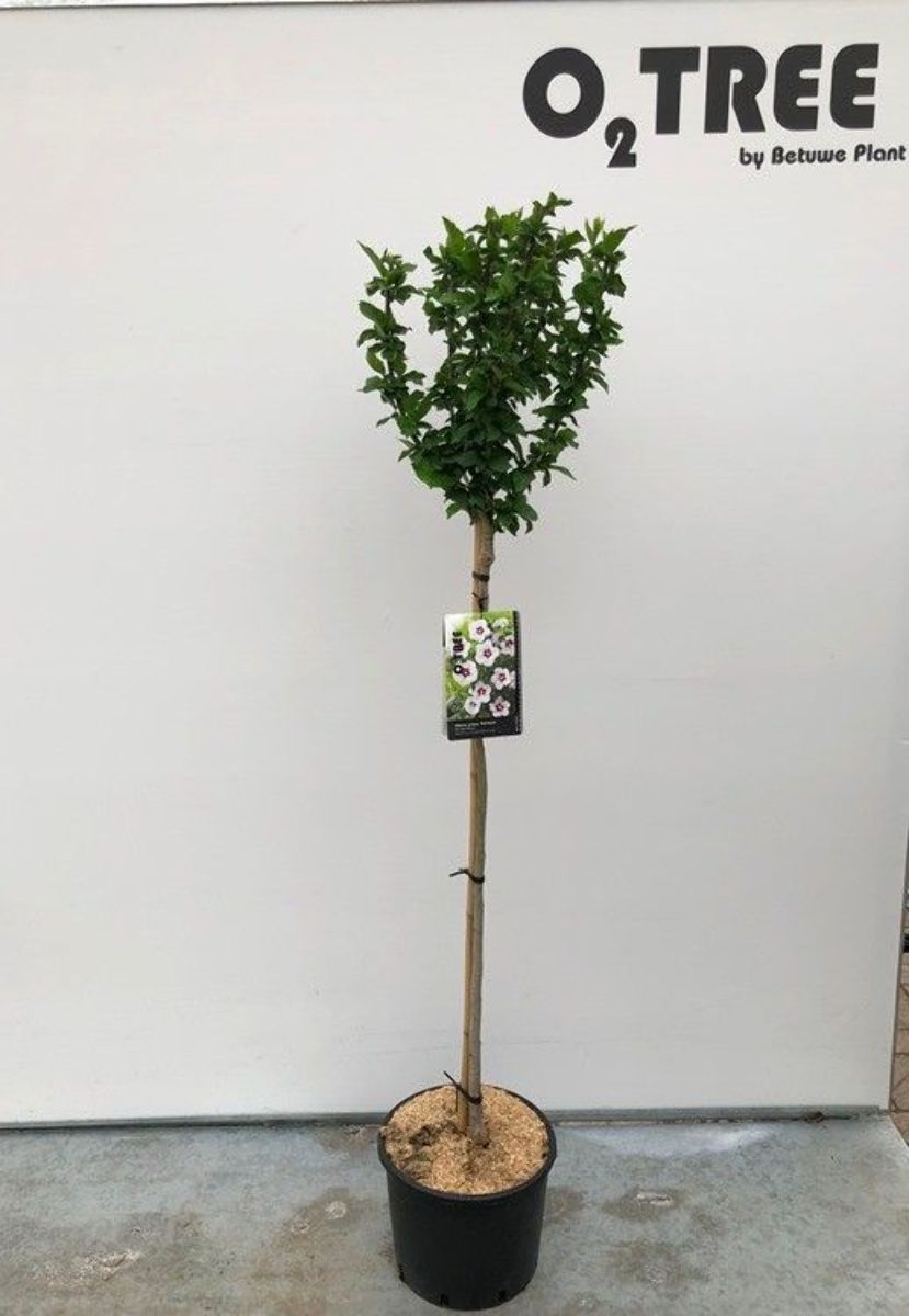 sommergrüner Strauch mit einem aufrechten Wuchs. Höhe ca. 1,5 m. Treibt spät im Frühjahr aus. Große, einfache, weiße Blüten. Im Herz rot gefleckt. August-Oktober. Sonne. Zu Frühjahrsbeginn gründlich schneiden.