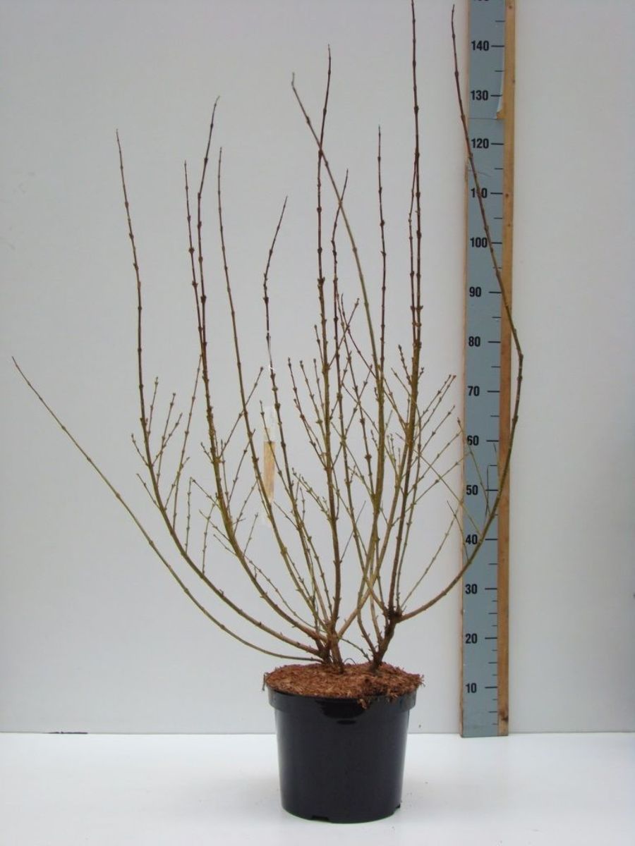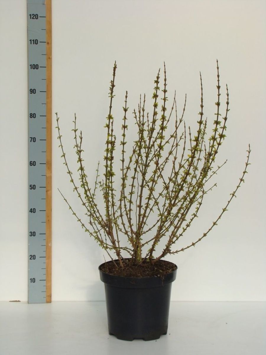 sommergrüner Strauch mit kräftig aufrecht wachsenden Ästen. Ca. 1,5 m hoch werdend. Vor dem Erscheinen des Laubes reiche Blüte. Goldgelbe Blüten. März-April. Braucht hellen Standort. Nach der Blütezeit einige alte Äste wegschneiden.