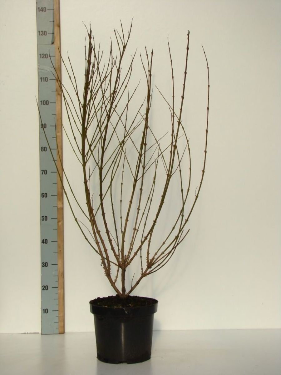 sommergrüner Strauch mit kräftig aufrecht wachsenden Ästen. Ca. 1,5 m hoch werdend. Vor dem Erscheinen des Laubes reiche Blüte. Goldgelbe Blüten. März-April. Braucht hellen Standort. Nach der Blütezeit einige alte Äste wegschneiden.