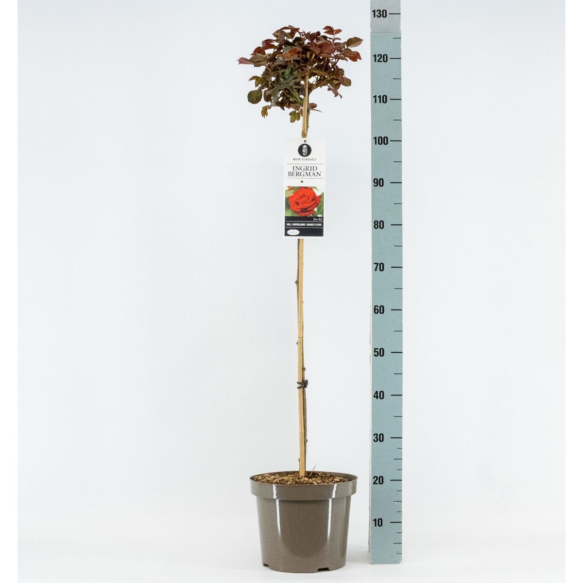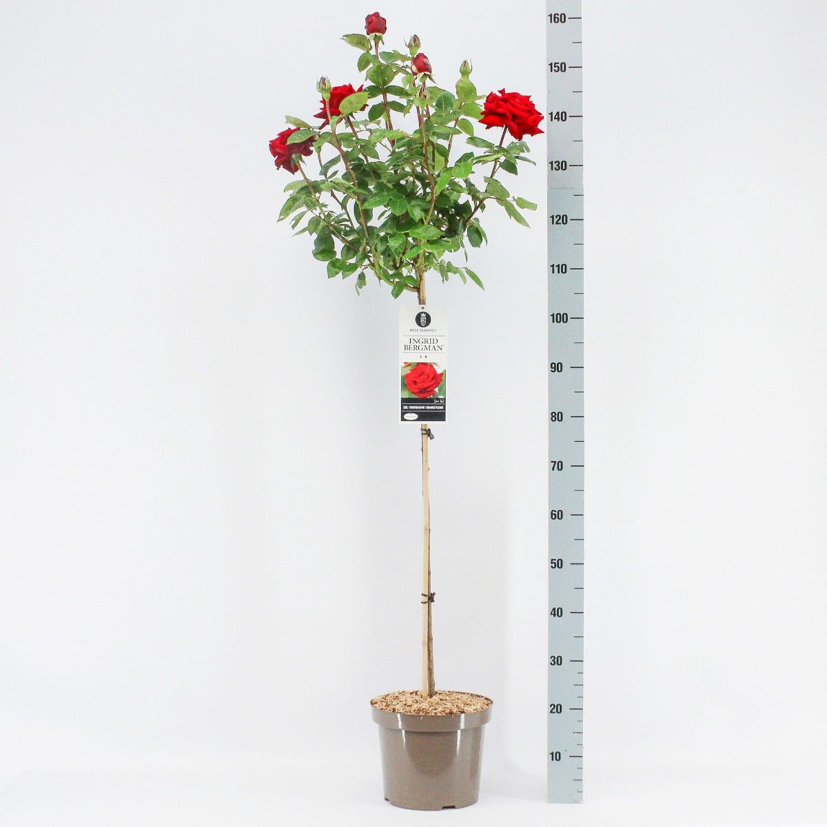 Reichhaltig und lange blühende Rose. Gefüllte dunkelrote Blüten an robusten Stielen. Leicht duftend. Hauptblüte im Juni-Juli. Rückschnitt nach der Hauptblüte führt zu Nachblüte ab Mitte August. Sonniger Standort. Höhe ca. 80 cm.