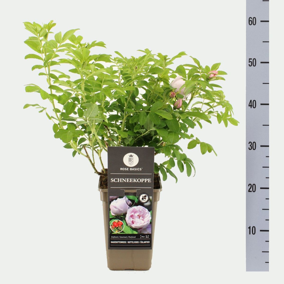Kleinwüchsige Strauchrose mit kleinen silber-weißen, halbgefüllten Blüten in großen Trauben. Ausdauernde Blüte von Juni bis Oktober. Ca. 50 cm hoch. Breit kompakt wachsend. Unempfindlich gegenüber den meisten Krankheiten und Schädlingen. Sonniger Standort.