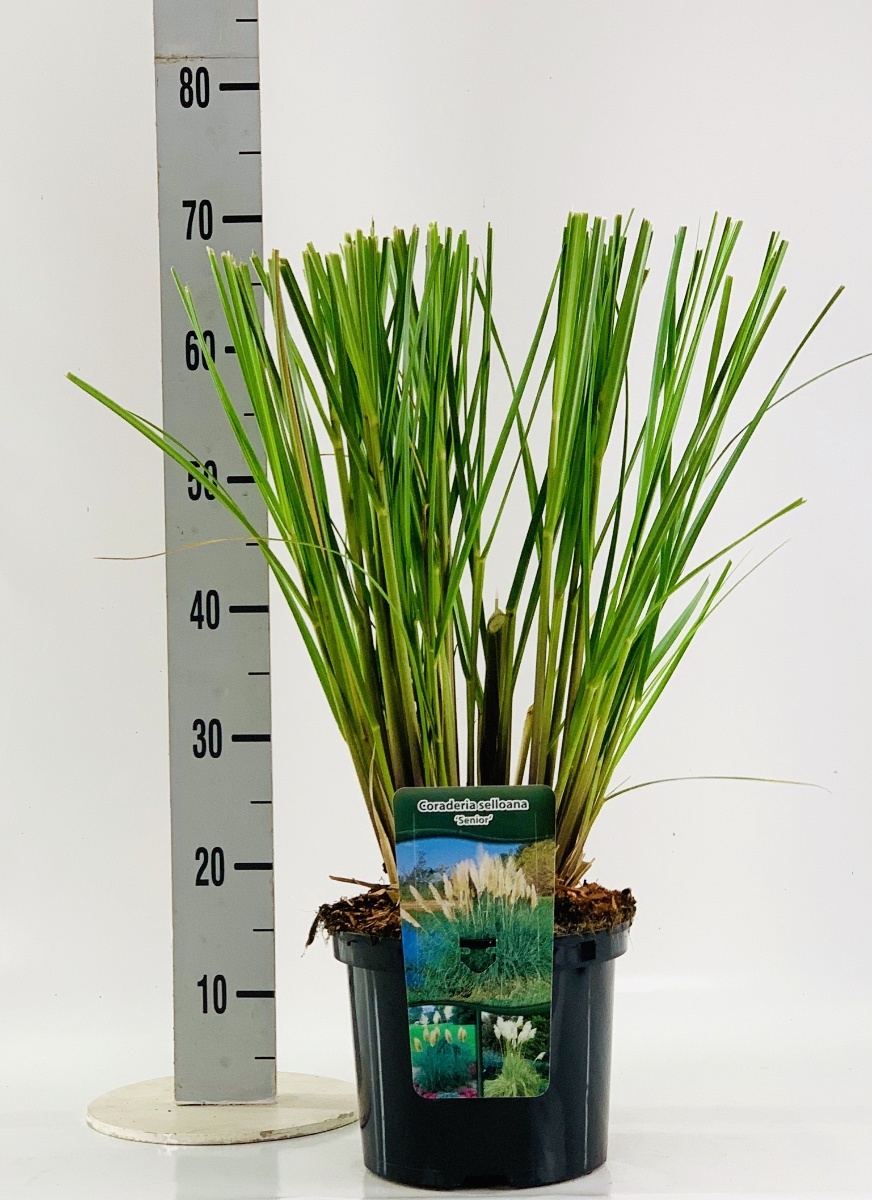 Ziergras mit sehr länglichem, grünem Blatt. Bildet ein robustes, immergrünes, bis ca. 1 m hoch werdendes Büschel. Auffällige, große, silberweiße, bis fast 2 m hoch werdende Blütenbüschel. August-November. Sonniger, nicht zu feuchter Standort. Vor eisiger Kälte schützen.