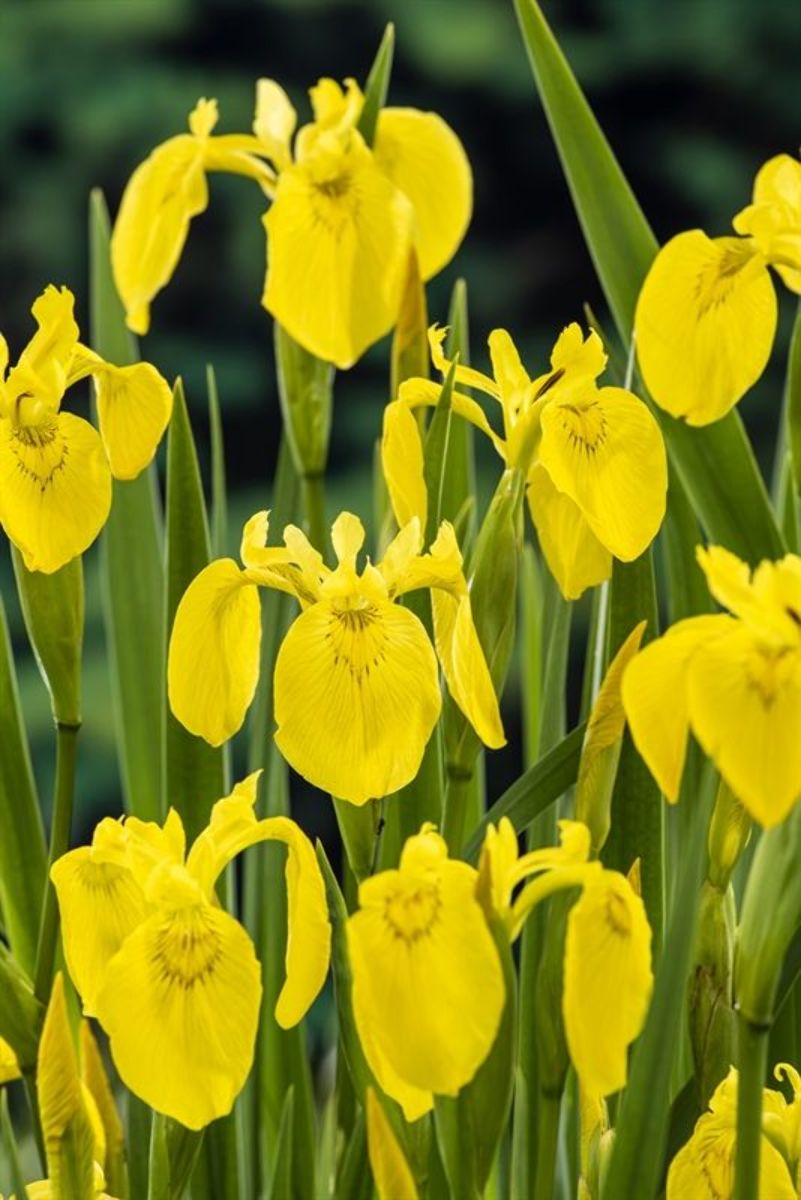 Aufrecht wachsende, dichte Pflanze mit grasartigem Laub. Höhe ca. 80 cm. An den Spitzen der Stiele erscheinen leuchtend gelbe Blüten. Mai-Juni. Sonne-Halbschatten. Feuchte bis nasse Böden. Schnittblume.