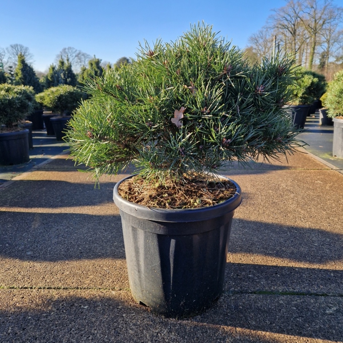 Wintergrüne, kompakt wachsende Zwergkonifere. Flachkugeliger Wuchs, ca. 50 cm hoch und 80 cm breit. Kurze tiefgrüne Nadeln. Absolut frostfest. Gedeiht auf allen frischen Gartenböden. Sonnig bis halbschattig. Eignet sich besonders für den Steingarten.