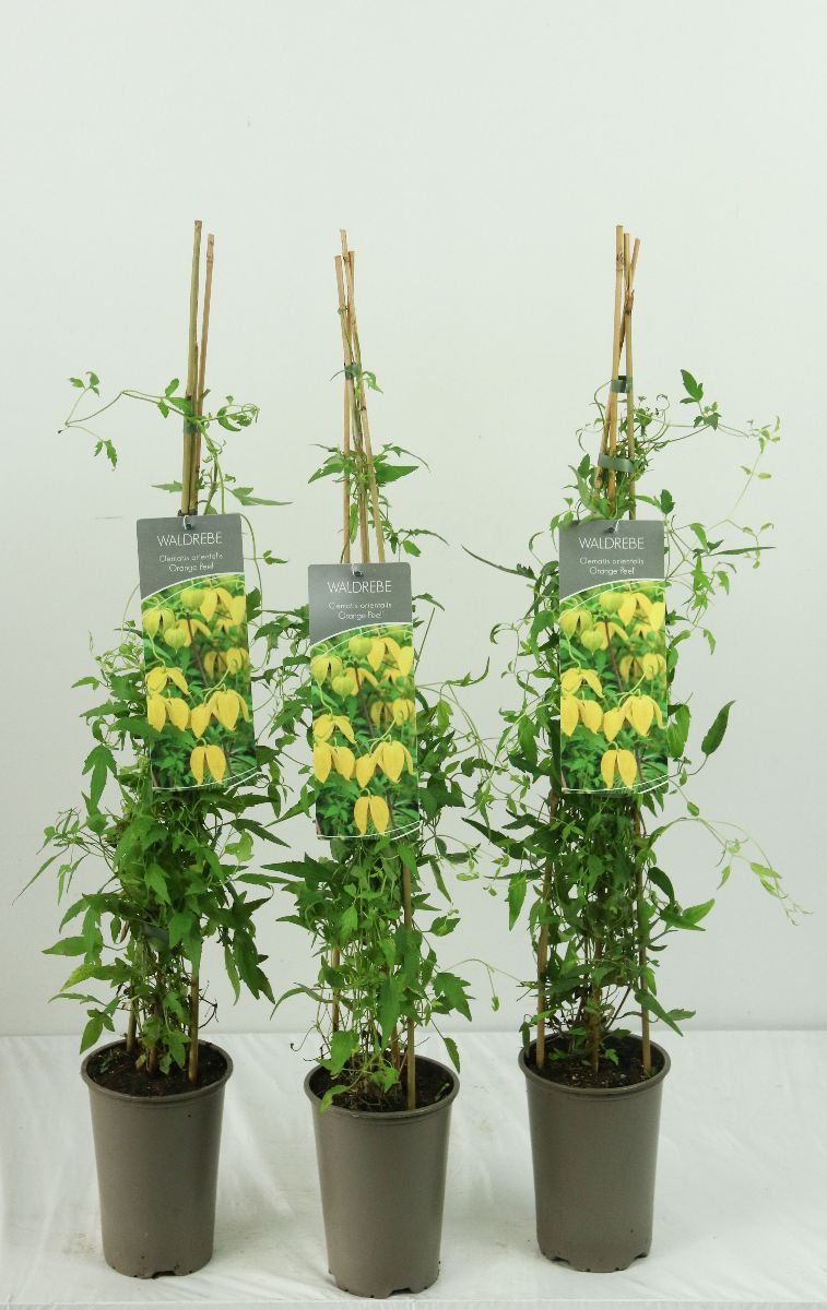 Sommergrüne Kletterpflanze ca. 4 bis 5 m hoch. Glockenartige, gold-gelbe Blüten im Juli und Oktober. Hellgrünes Laub. Danach dekorative, langhaftende Samenstände. Sonnig bis halbschattig. Sonnige Standorte mit nährstoffreichem Boden.