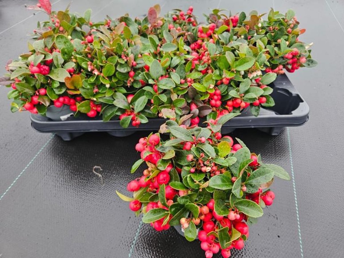 Bodendeckende, immergrüne Pflanze. Höhe ca. 15 cm. Runde, glänzend grüne Blätter, Herbstfärbung purpurbraun. Im Herbst leuchtend rote Beeren, lange an der Pflanze bleibend. Sonne-Halbschatten. Humusreiche Böden.