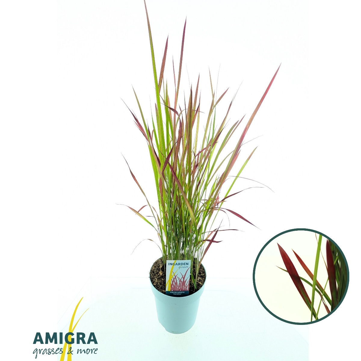 Ziergras mit bis ca. 40 cm hoch werdendem, länglichem Blatt. Im Frühjahr rotgrün, nimmt aber später eine intensiv rote Farbe an. Keine Blüten. Sonne-leichter Schatten. Nahrhafte Böden. Vor eisiger Kälte schützen.