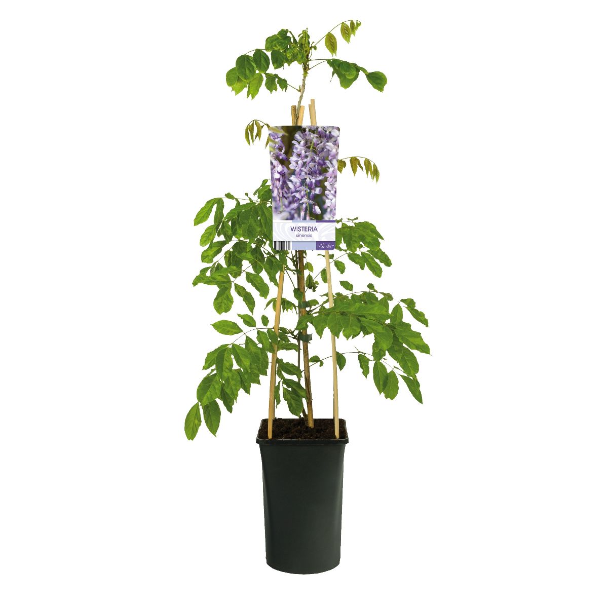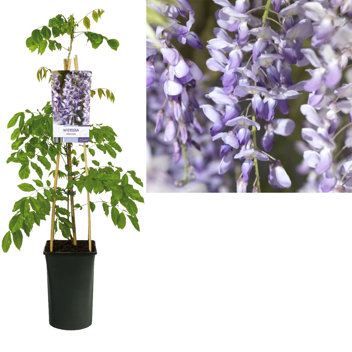 Hohe Kletterpflanze mit kräftigem Wuchs. sommergrün. Höhe 7-9 m. Blatt gefiedert, leuchtend grün. Blüten hell lilablau in langen, hängenden Trauben. Duftend. Mitte Mai, vor dem Blattaustrieb. Nachblüte im September.
