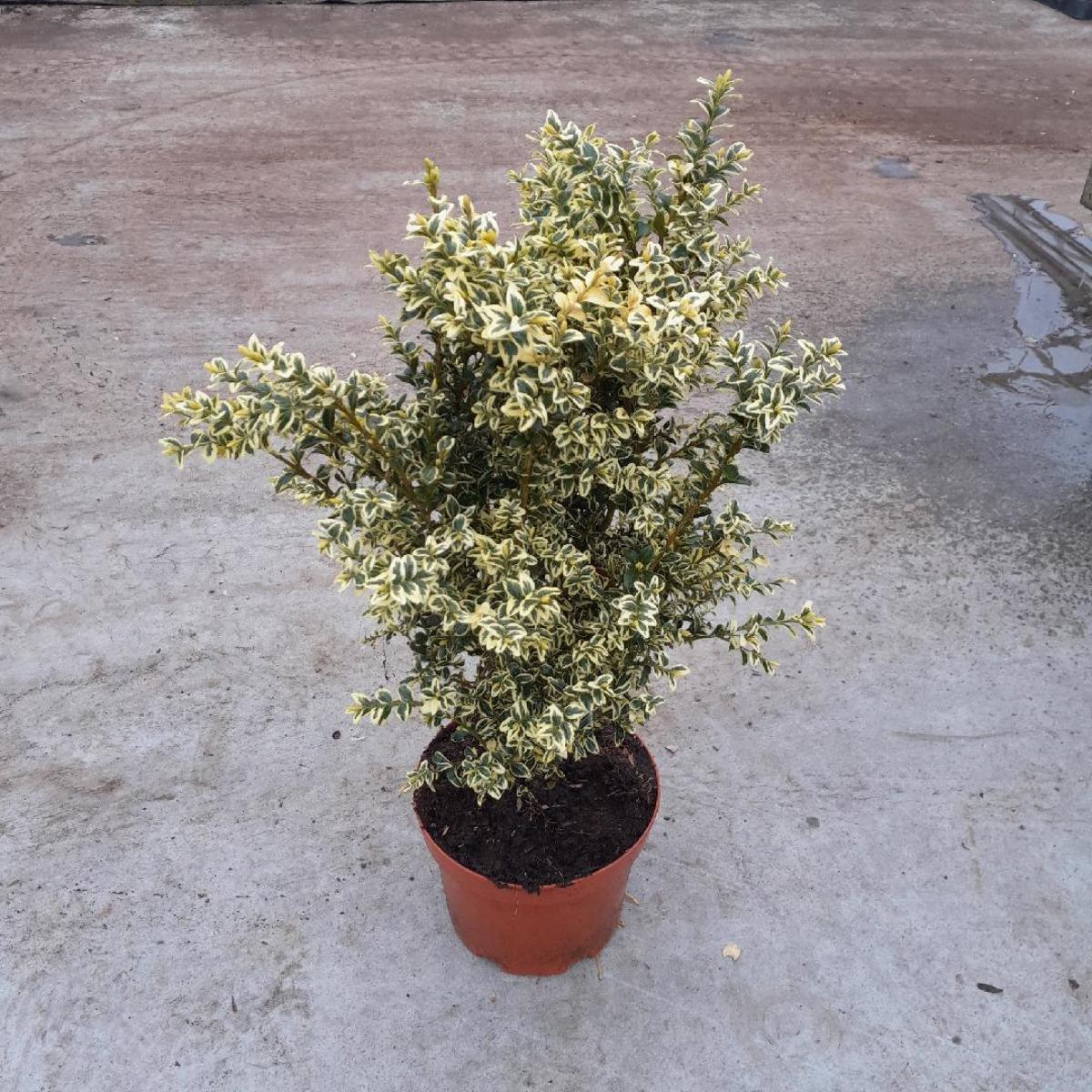 Immergrüner, langsam wachsender Strauch. Sehr gut schnittverträglich. Dunkelgrünes, weißgerandetes, kleines Laub. Für Sonne und Schatten. Als Topfpflanze geeignet. Sehr frosthart.