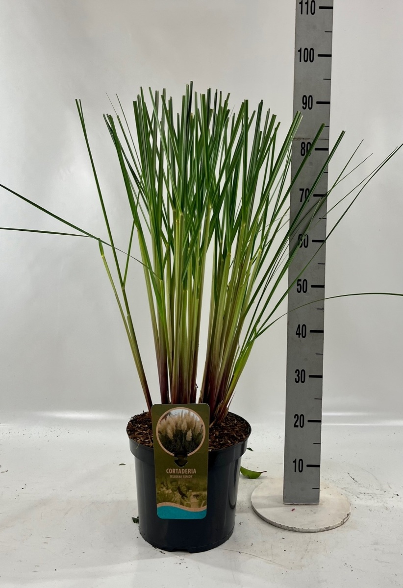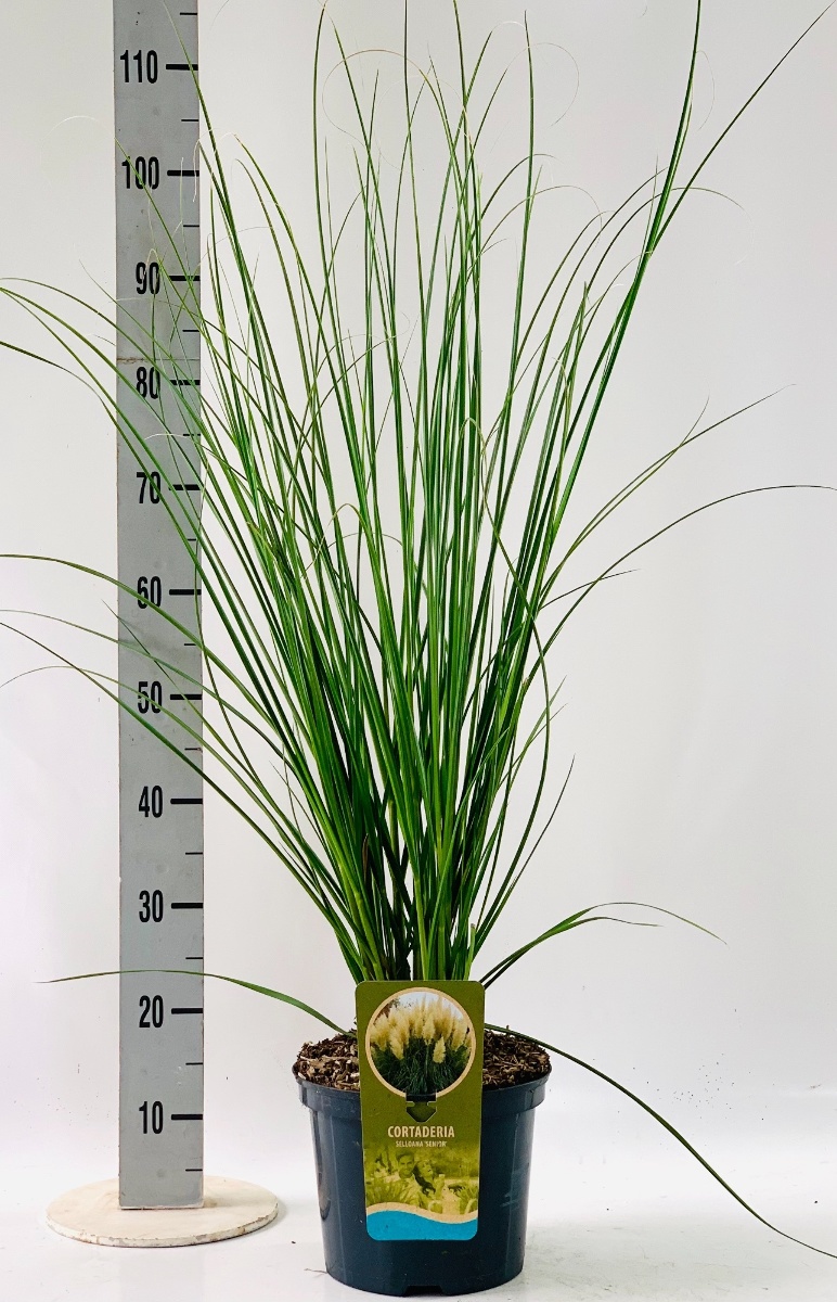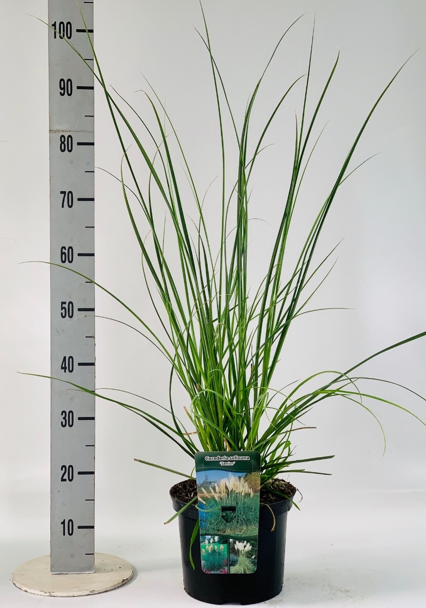 Ziergras mit sehr länglichem, grünem Blatt. Bildet ein robustes, immergrünes, bis ca. 1 m hoch werdendes Büschel. Auffällige, große, silberweiße, bis fast 2 m hoch werdende Blütenbüschel. August-November. Sonniger, nicht zu feuchter Standort. Vor eisiger Kälte schützen.