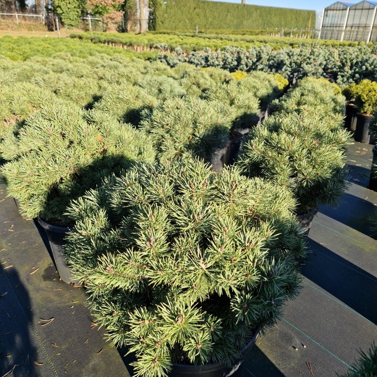 Wintergrüne, kompakt wachsende Zwergkonifere. Flachkugeliger Wuchs, ca. 50 cm hoch und 80 cm breit. Kurze tiefgrüne Nadeln. Absolut frostfest. Gedeiht auf allen frischen Gartenböden. Sonnig bis halbschattig. Eignet sich besonders für den Steingarten.