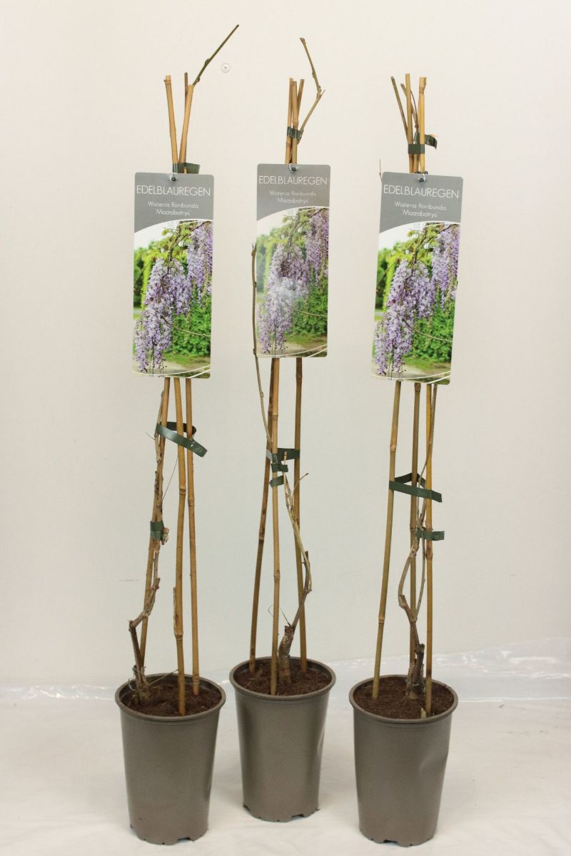 Hohe Kletterpflanze mit kräftigem Wuchs. sommergrün. Höhe 7-9 m. Blatt gefiedert, leuchtend grün. Blüten violettblau in sehr langen, hängenden Trauben. Blütezeit: ab Ende Mai, zugleich mit dem Blatt. Nachblüte im September.