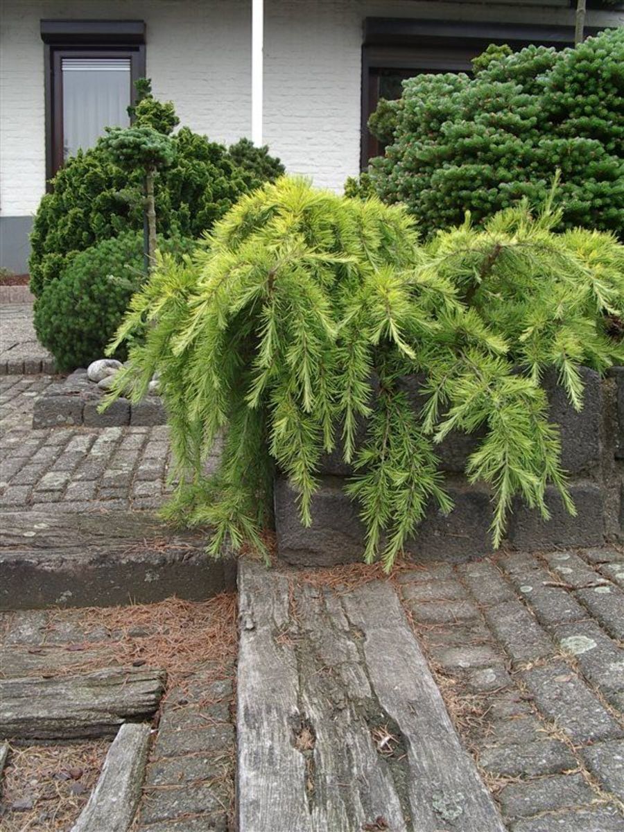 Breit ausladende Konifere, bis ca. 1 m hoch werdend. Äste leicht herabhängend. Langsam wachsend. Nadeln in quirlichen Büscheln angeordnet, auffällig gelbgrün. Junge Pflanzen vertragen keine extreme Kälte. Sonne. Gedeiht nicht auf kalkhaltigen Böden.