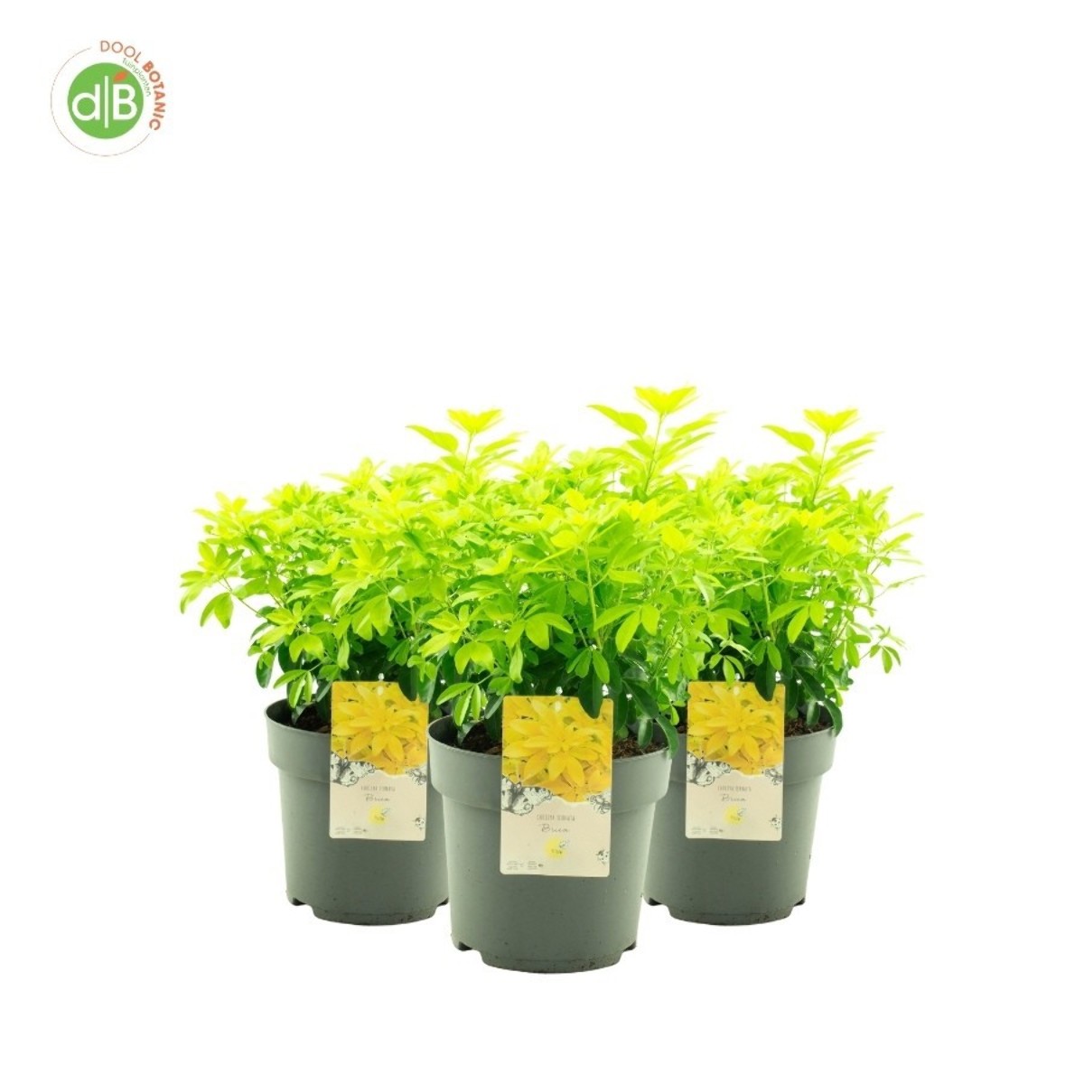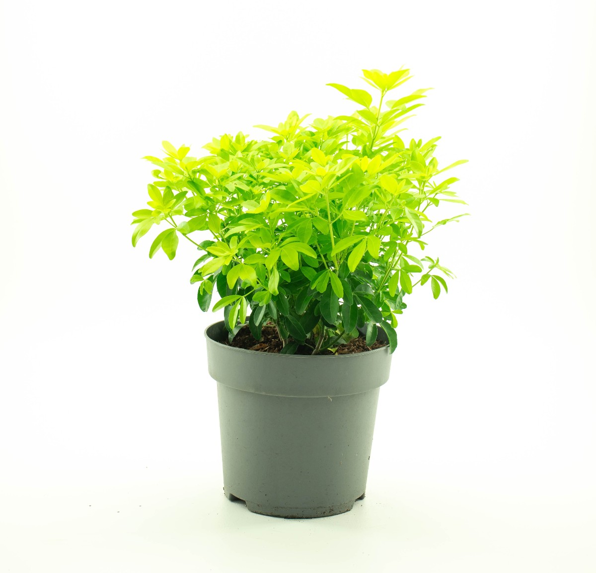 Runder, dicht verzweigter und immergrüner Strauch. Höhe 1,5-2 m. Glänzend leuchtend gelblichgrünes und zierliches Blatt. Duftend. Wenig weiße, duftende Blüten. Juni-August. Braucht einen sonnigen und geschützten Standort.