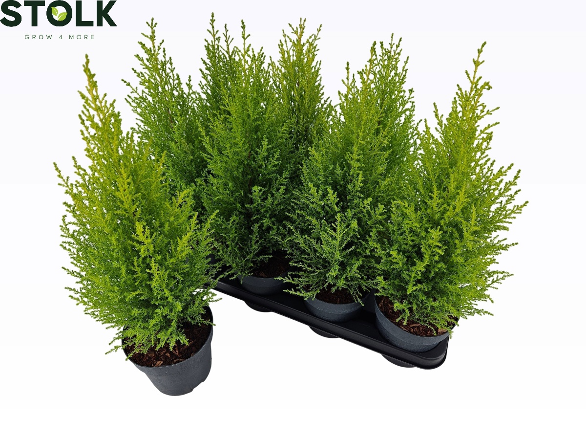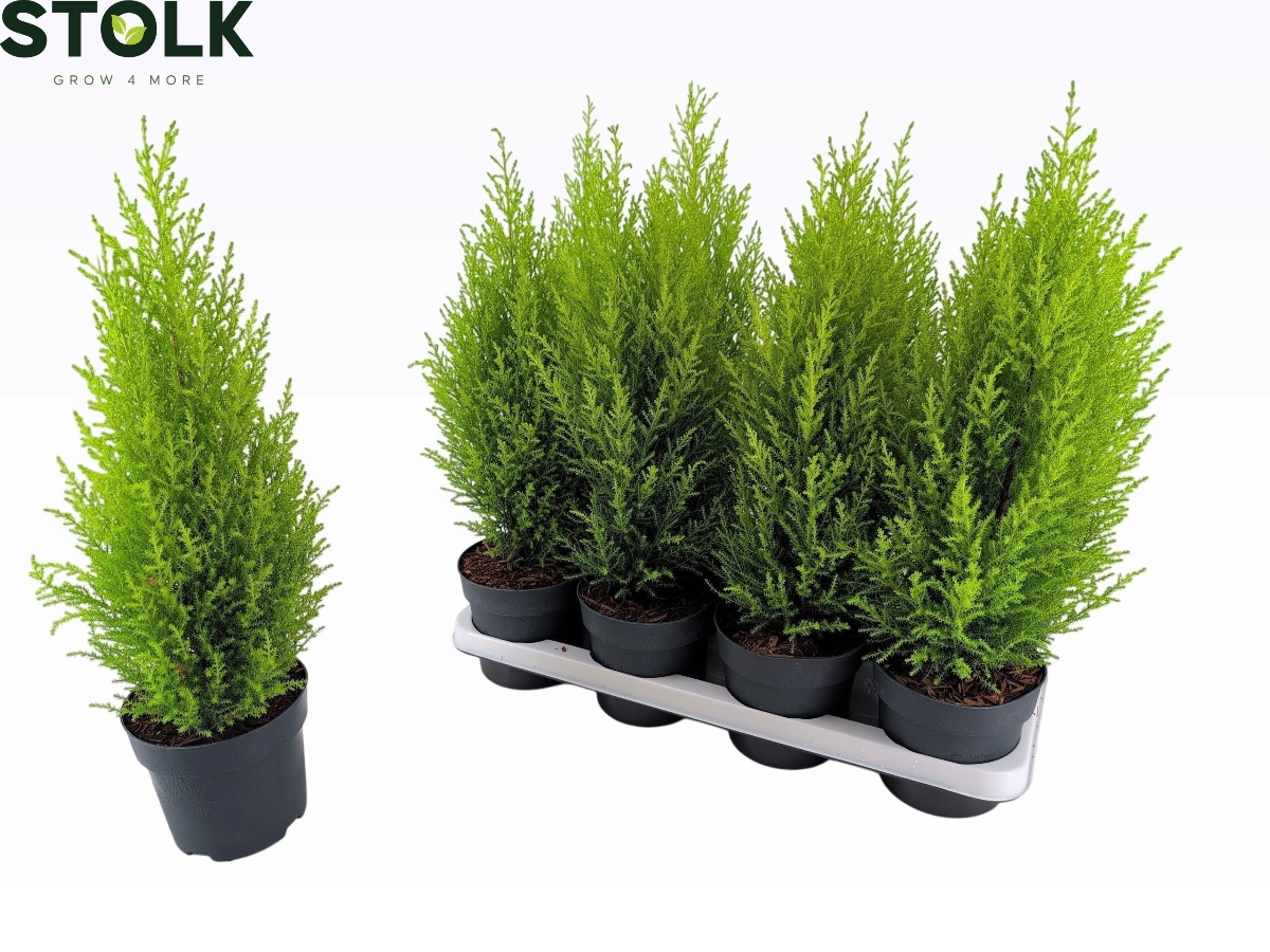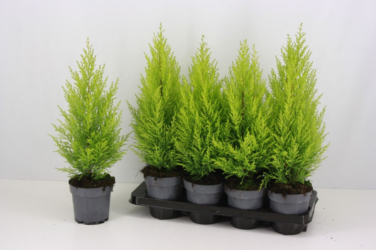 Schmal, säulenförmige Konifere. Ca. 3 bis 4 m hoch. Kompakter Wuchs. Auffallend grüngelbes Laub. Heller Standort. Frostempfindlich. Kalktolerant. Schnittverträglich.