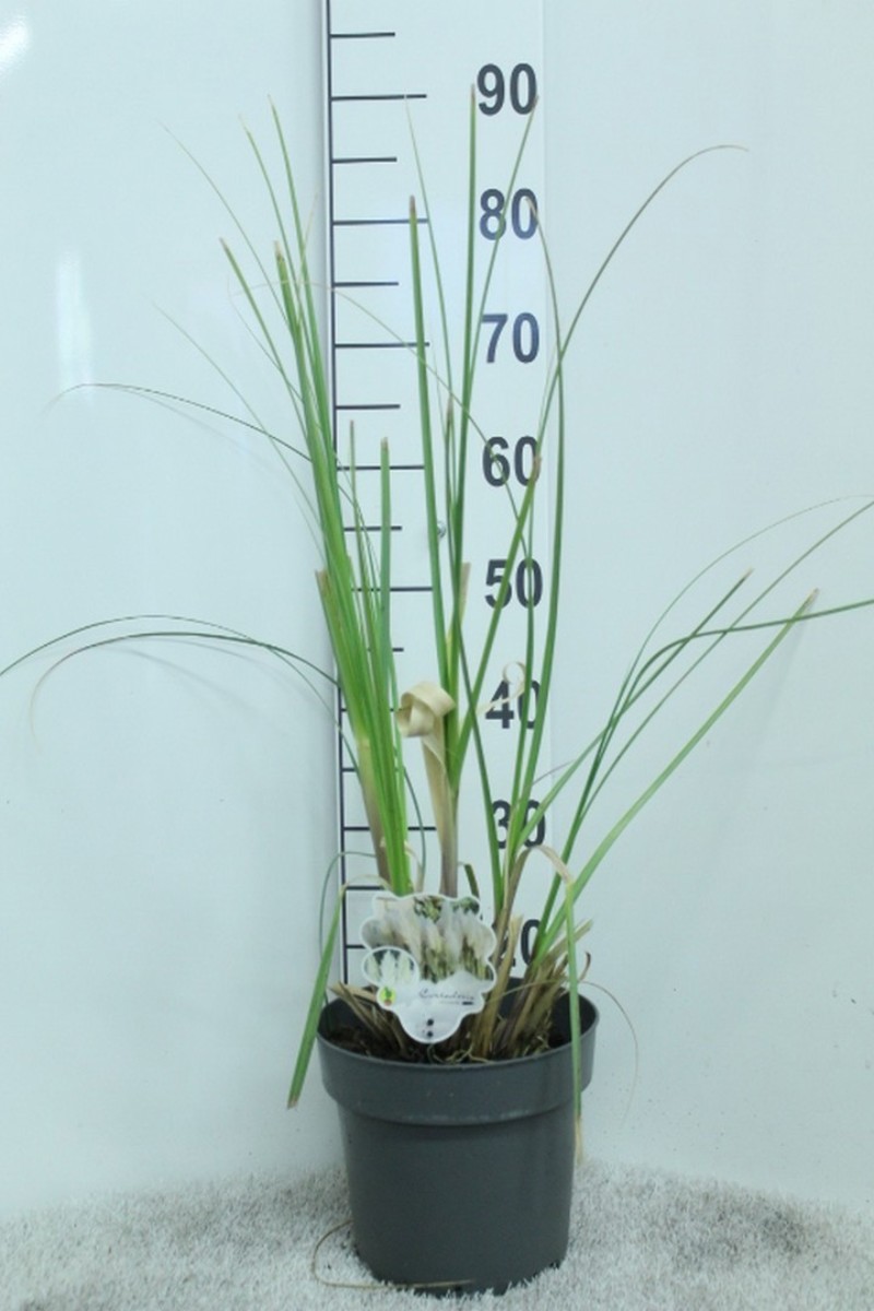 Ziergras mit langem, grünem Laub. Bildet einen wintergrünen Horst bis ca. 1 m hoch. Auffallend silbrigweiße Blütenrispen bis ca. 2 m hoch. August bis November. Sonnig und nicht zu feucht. Vor starkem Frost schützen.